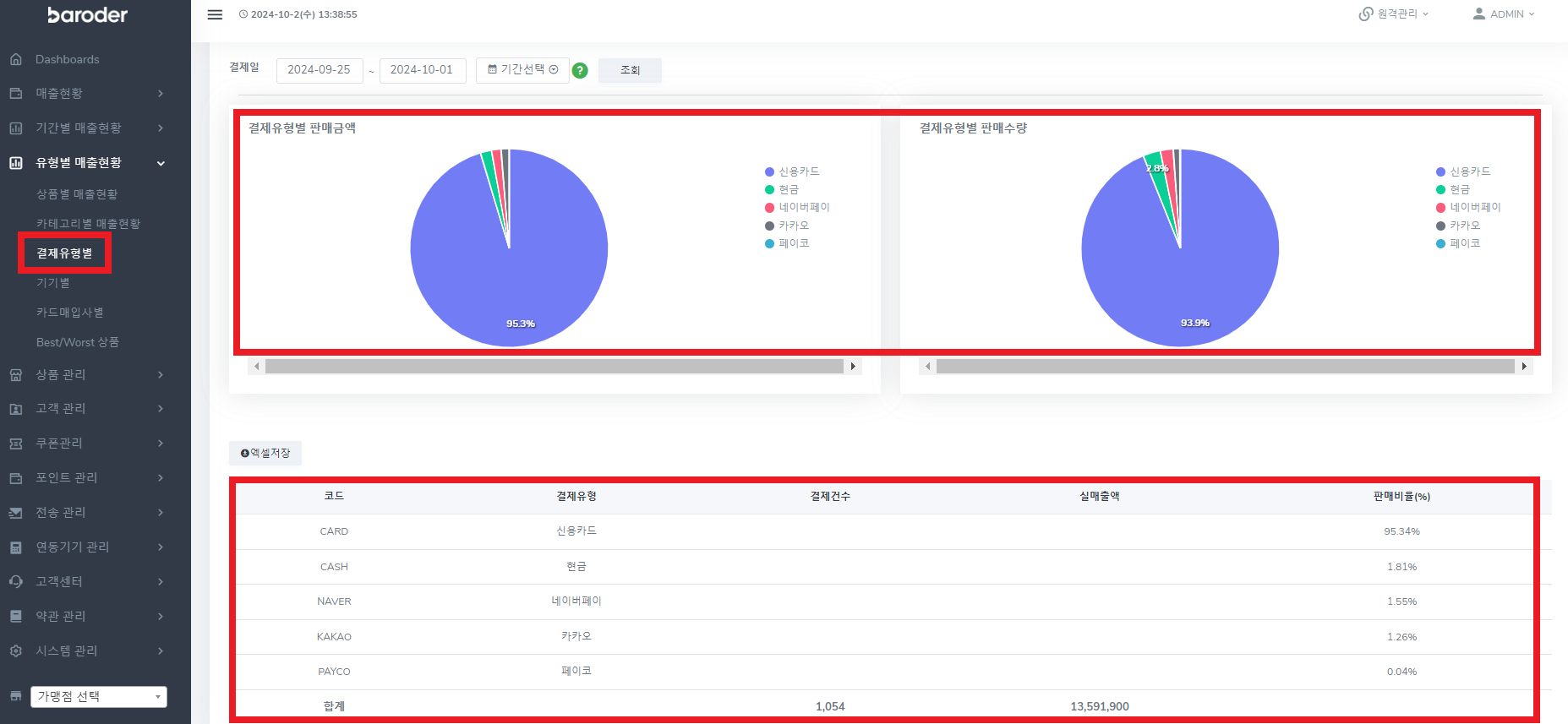 어느 결제수단으로 가장 많이 결제되는지 그래프로 표기됩니다.