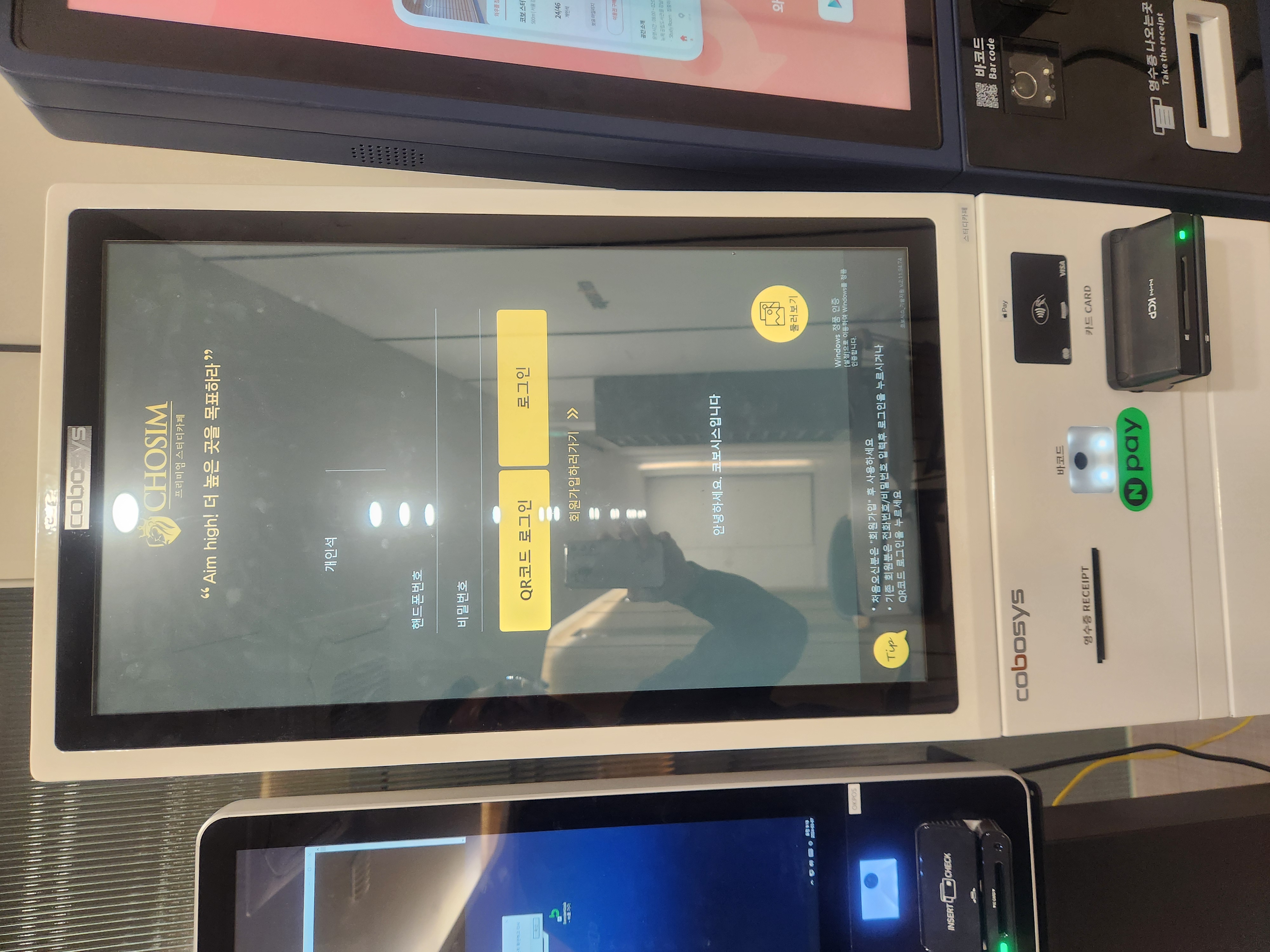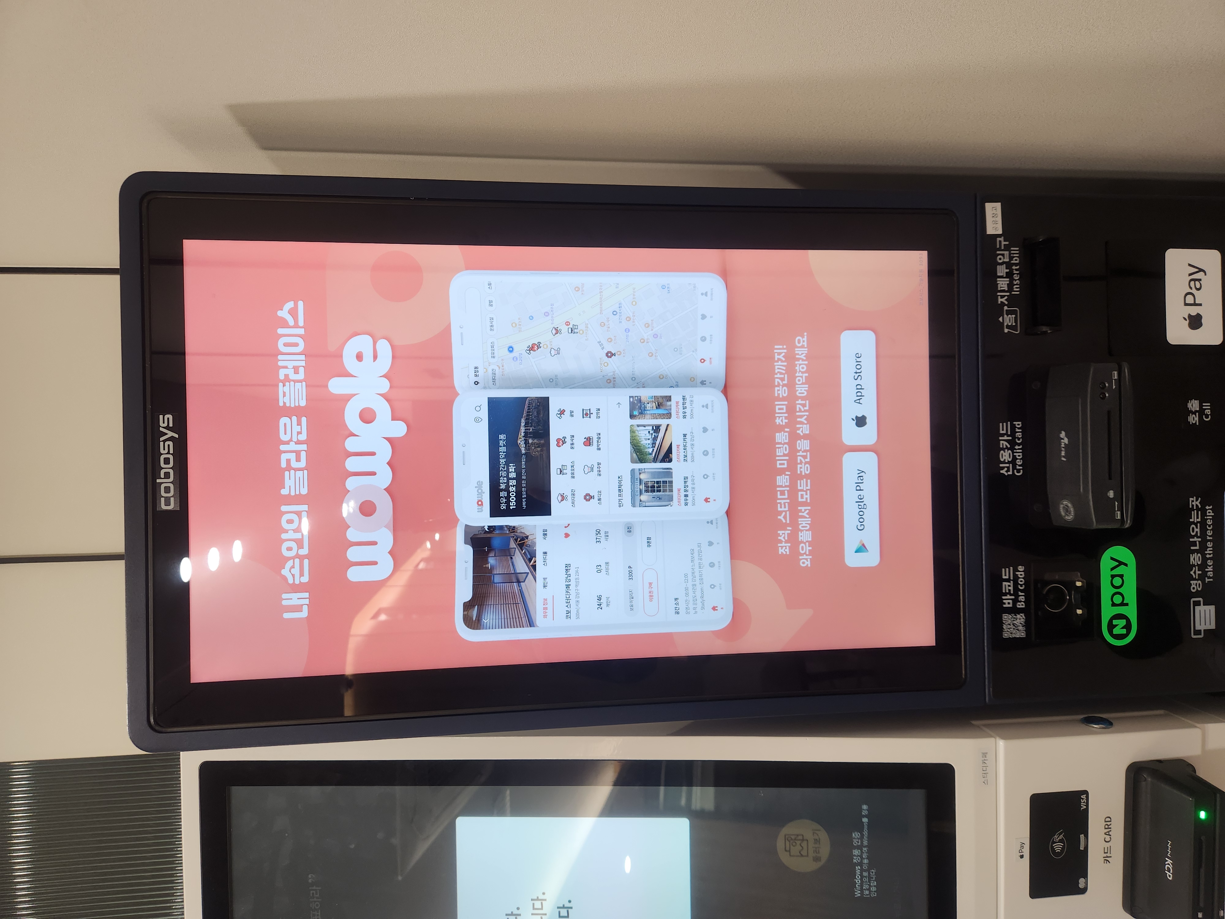 - 가맹점 스티커 부착하며 키오스크 상단에 위와 같이 스티커를 비치 후 퇴거할 예정입니다.