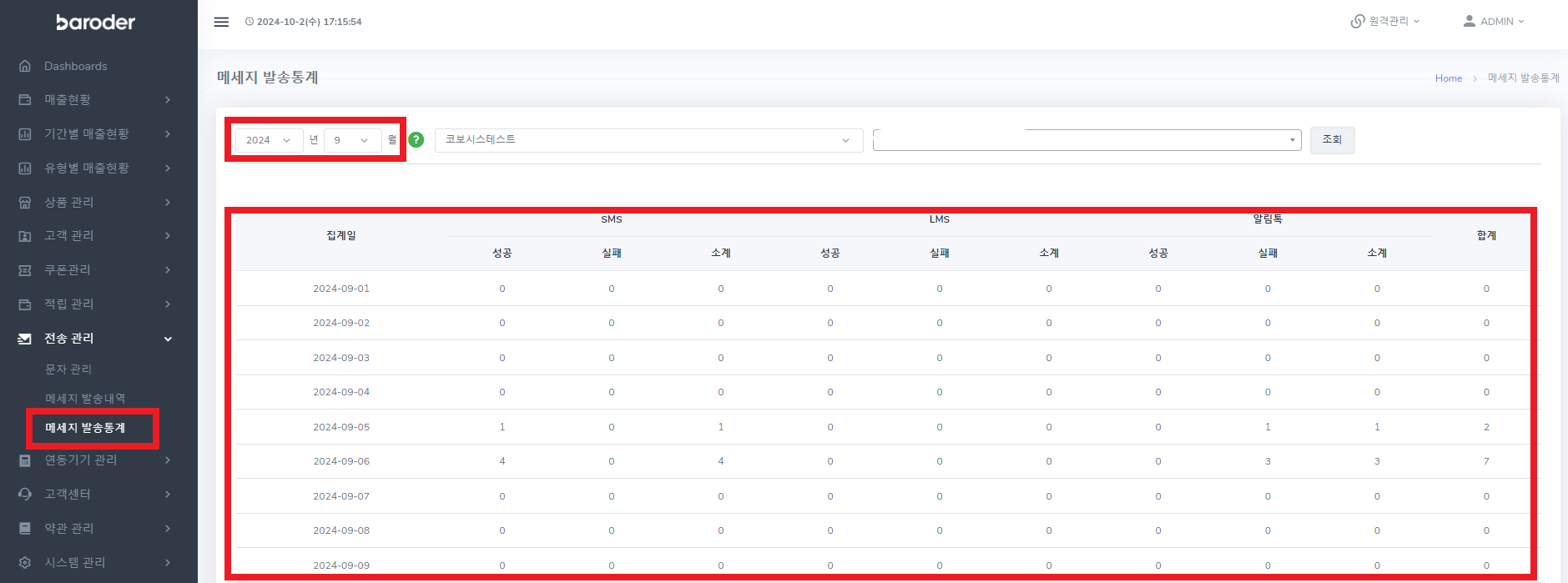 메세지 발송 건 수를 확인할 수 있습니다.