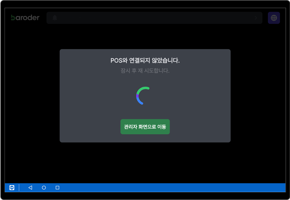 태블릿 설정이 완료되면 테이블오더 화면이 정상적으로 나타남