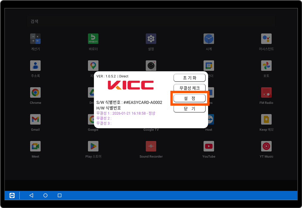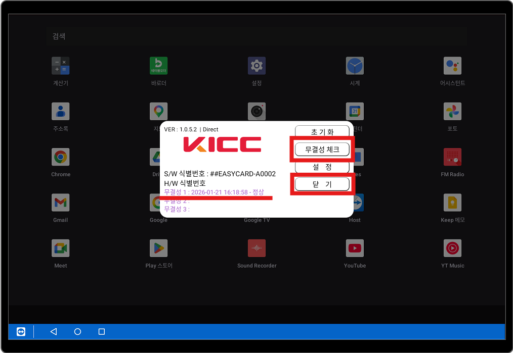 무결성 체크 확인 정상적으로 카드리더기 설정이되었는지 최종확인