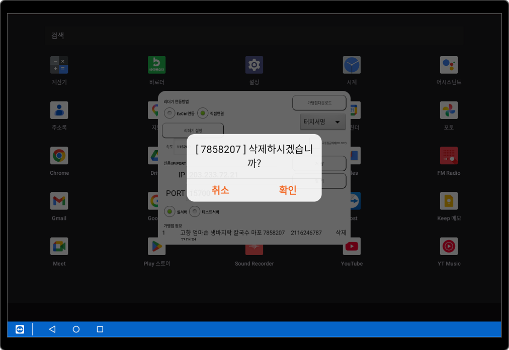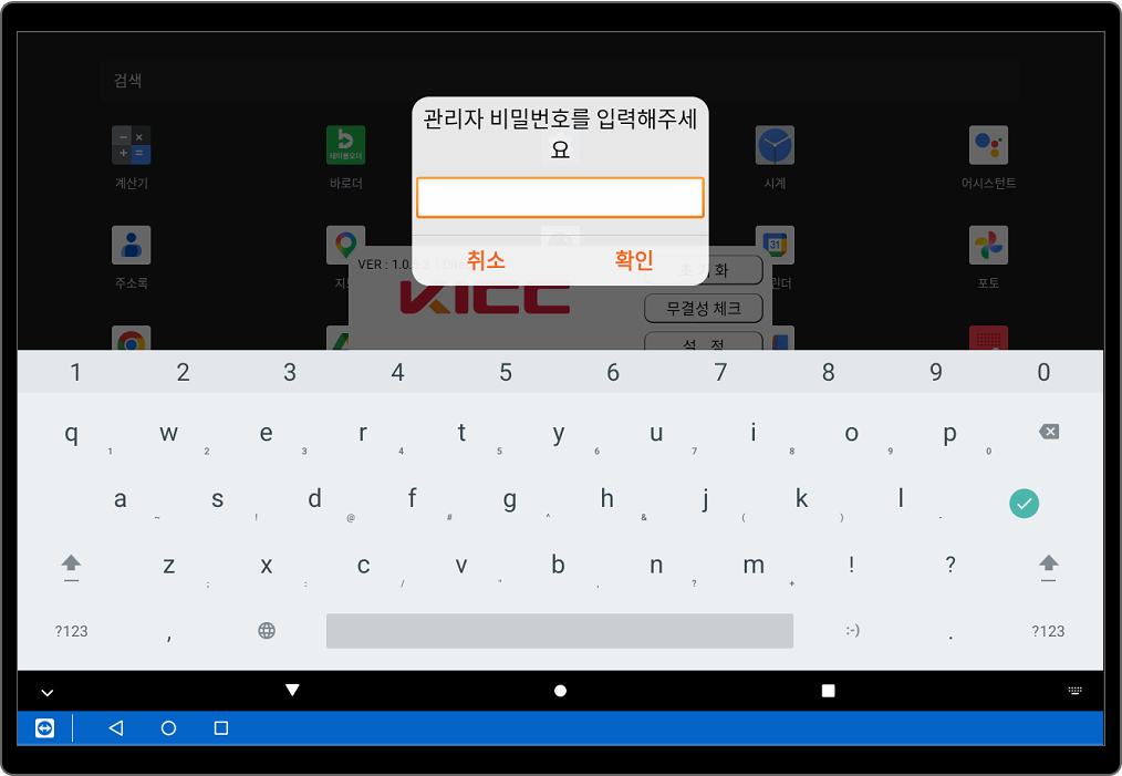 ※ 해당 정보를 모르는 경우 다른 정상적인 태블릿에서 관리자 화면으로 들어가면 설정되어있는정보를 확인 가능