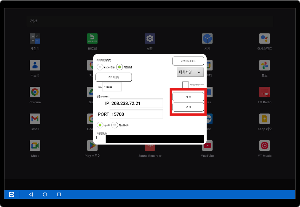 가맹점 다운로드 완료 후 저장 선택 > 닫기 선택