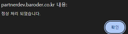 9. "정상 처리 되었습니다." 메세지 확인 후 "확인" 버튼을 클릭 합니다.