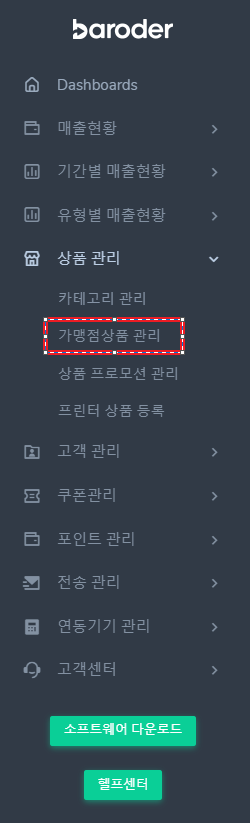 2. "가맹점 상품 관리" 버튼 클릭 합니다.