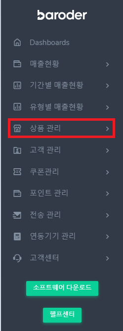1. "상품 관리" 버튼 클릭 합니다.