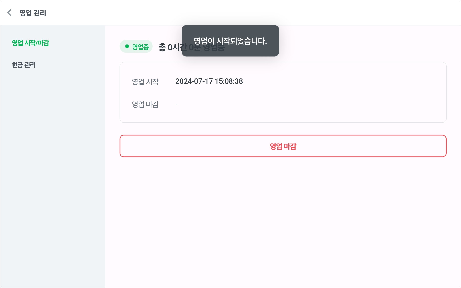 영업 시작 시 포스 시스템을 초기화하여 모든 거래가 정확히 기록될 수 있도록 합니다.