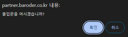3. 팝업 된 "출입문을 여시겠습니까?" 화면에서 "확인" 버튼을 누른다.