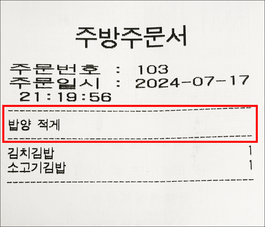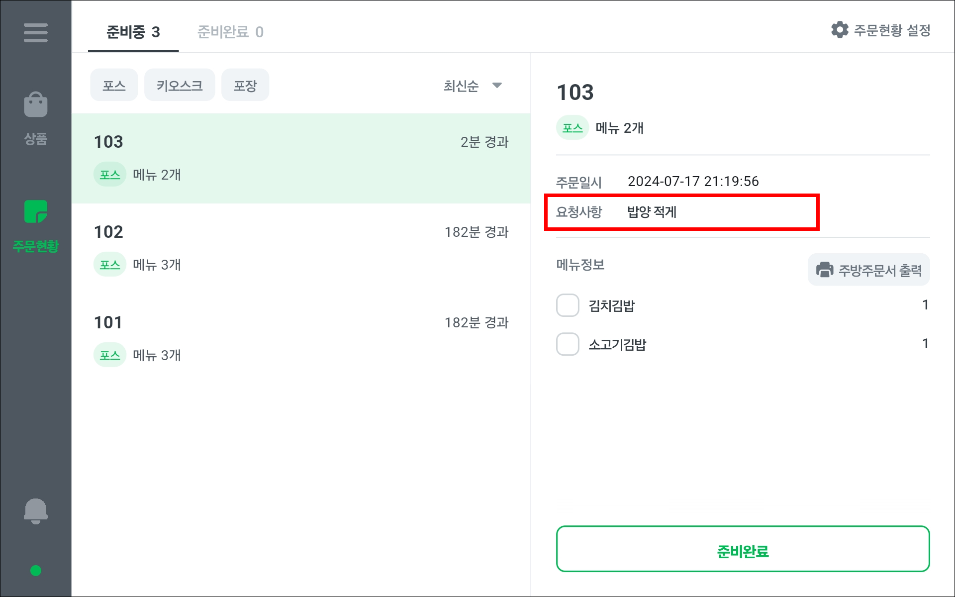 4) 동시에 주방주문서에서도 입력된 메모를 확인할 수 있어요.