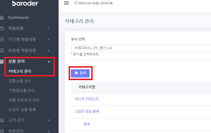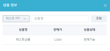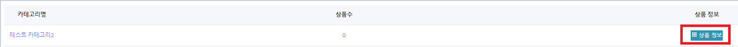 등록한 카테고리의 상품정보 란 클릭 시 등록 된 상품 정보가 보여집니다.