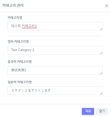 다국어 매장의 경우 다국어도 같이 입력 하여 저장 합니다.