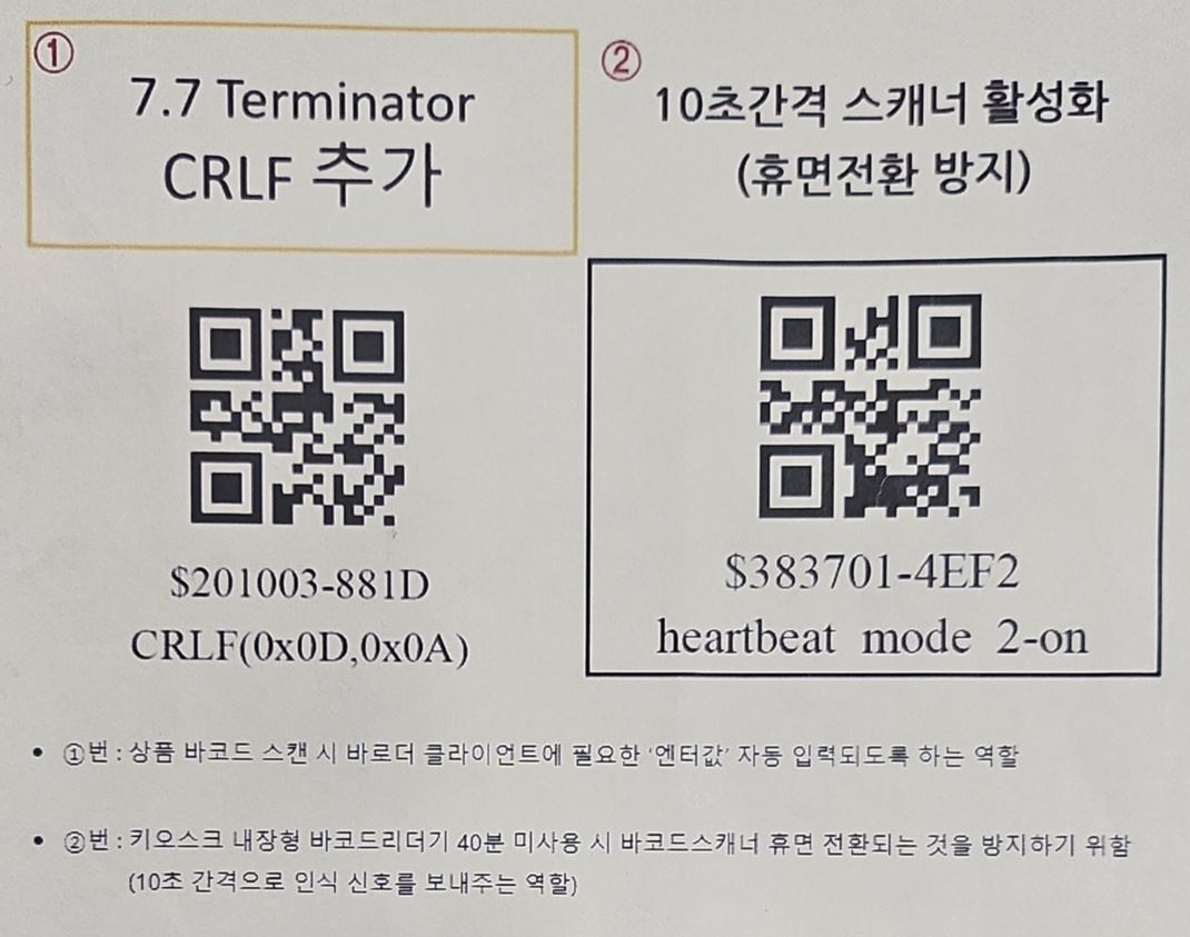 바코드 인식이 안될 때 고객지원센터(1833-6990)으로 먼저 전화하시어 전문 상담원의 원격 점검 후 필요시 진행 하셔야 합니다.