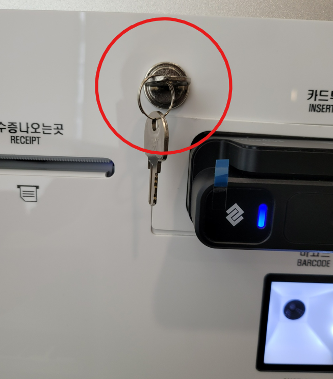 2.아래 사진에 표시한 부분에 열쇠를 돌려서 커버를 열어줍니다.