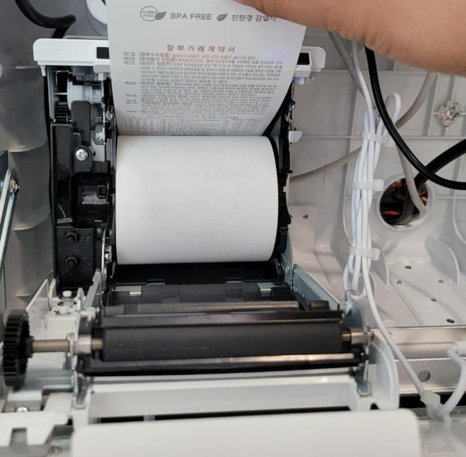 6.사진과 같이 커버가 열린 상태에서 감열지를 교체 합니다.