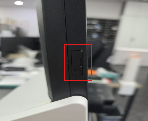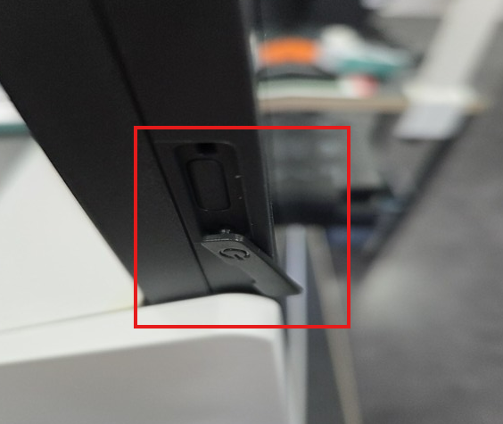 키오스크 왼쪽 하단 부근의 전원버튼의 커버를 열어주세요.
