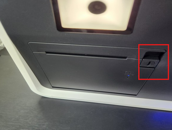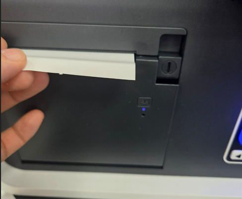 전면의 영수증 옆 부분의 버튼을 눌러 커버를 오픈 합니다.