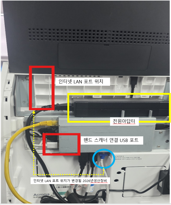 ※ 핸드 스캐너 케이블 / 전원케이블 기기 밖으로 빼는 위치