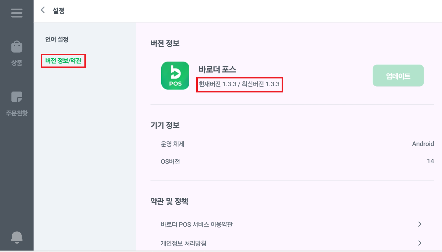 2.버전 정보/약관 클릭