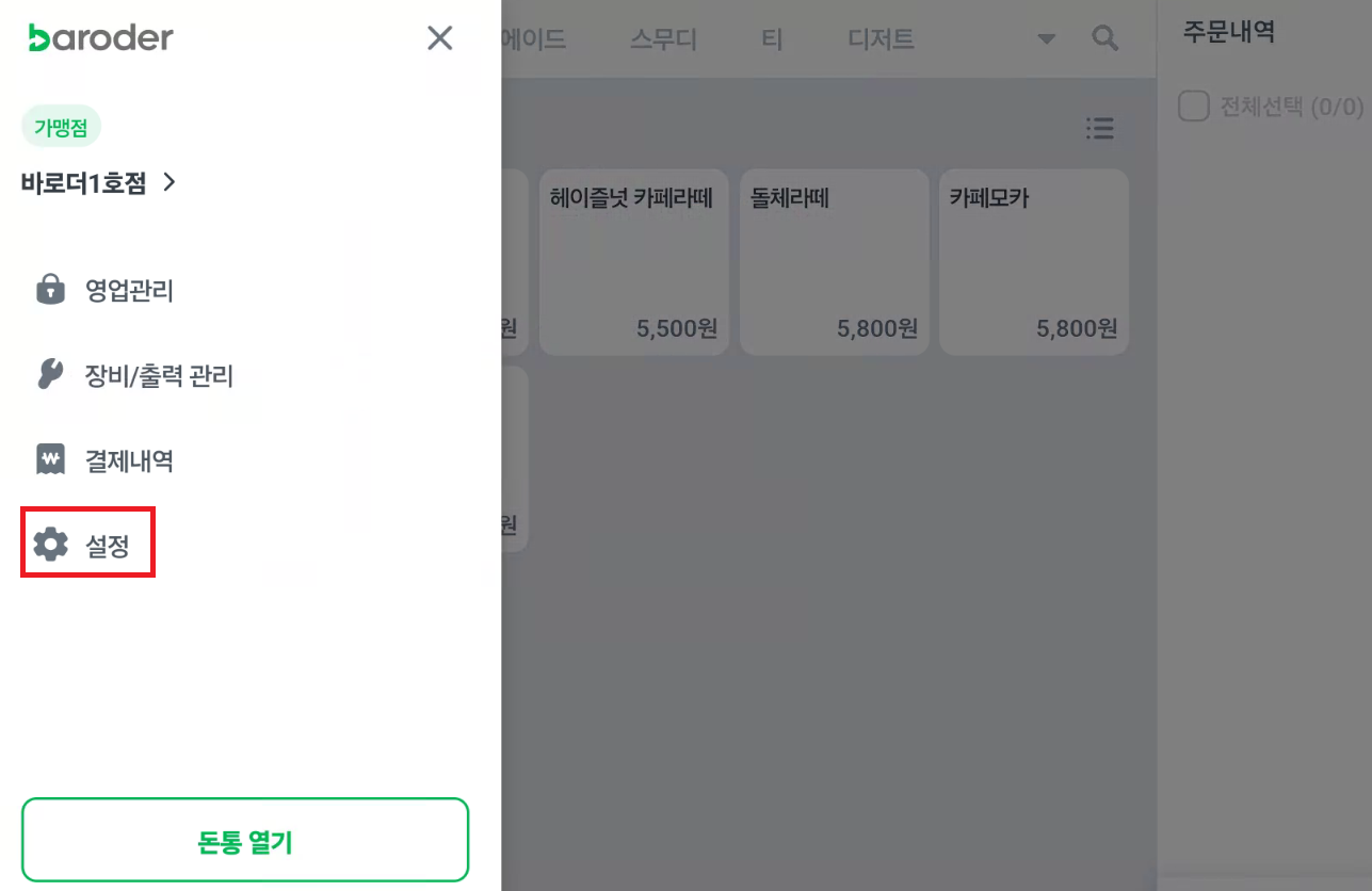 3.설정 버튼 클릭